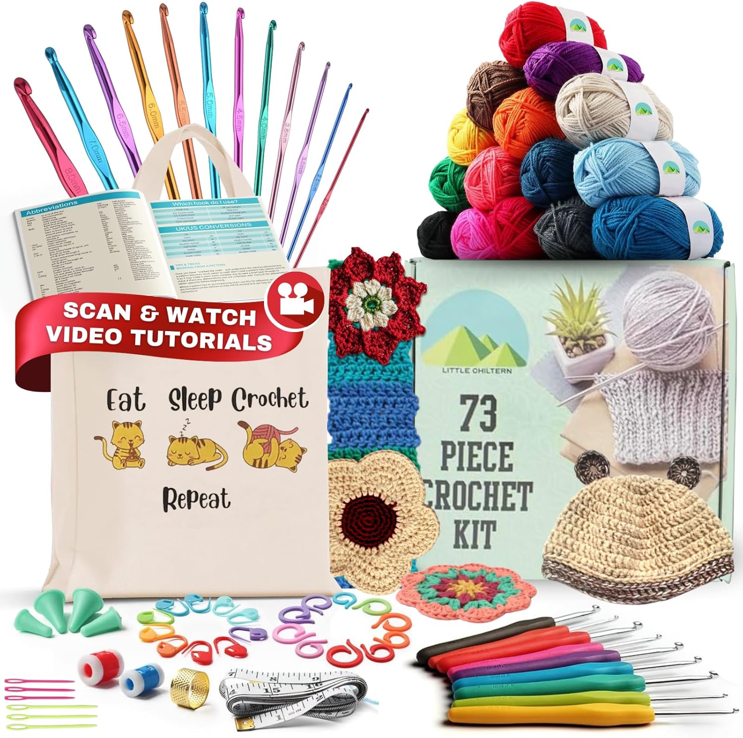 - The kit includes all the crochet hooks, yarn, tools, and step-by-step video tutorials you need to get started on your crochet journey.
